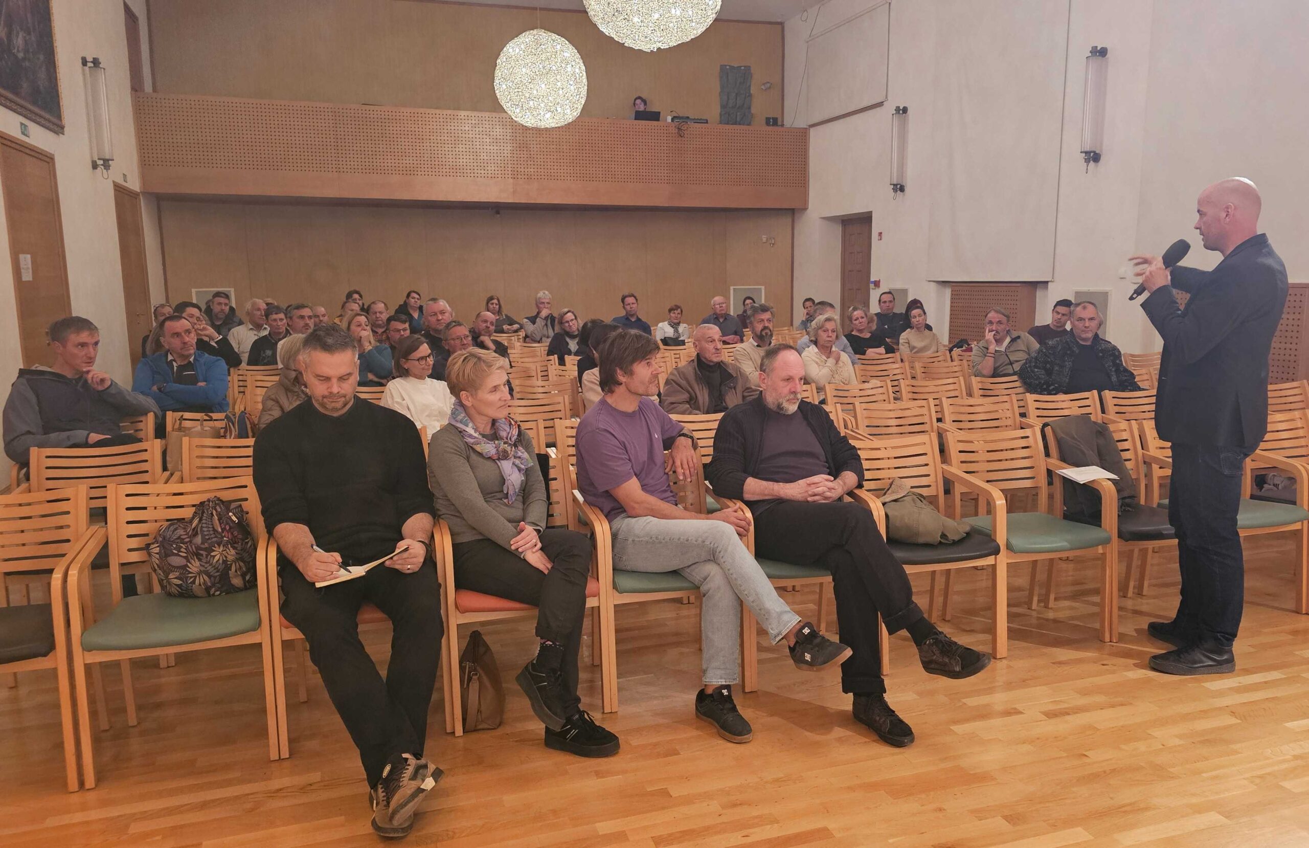 V torek, 11. novembra 2025, je v Sokolskem domu Škofja Loka potekal sestanek s stanovalkami in stanovalci mestnega jedra. Na srečanju, ki smo se ga udeležili župan, predstavniki projektne ekipe za prenovo ter prebivalke in prebivalci središča mesta, smo razpravljali o ureditvi mestnega jedra po zaključeni prenovi. Pogovor je tekel o prometni ureditvi, ravnanju z odpadki, organizaciji prireditev, urejanju infrastrukture ter kakovosti bivanja v prenovljenem središču.
