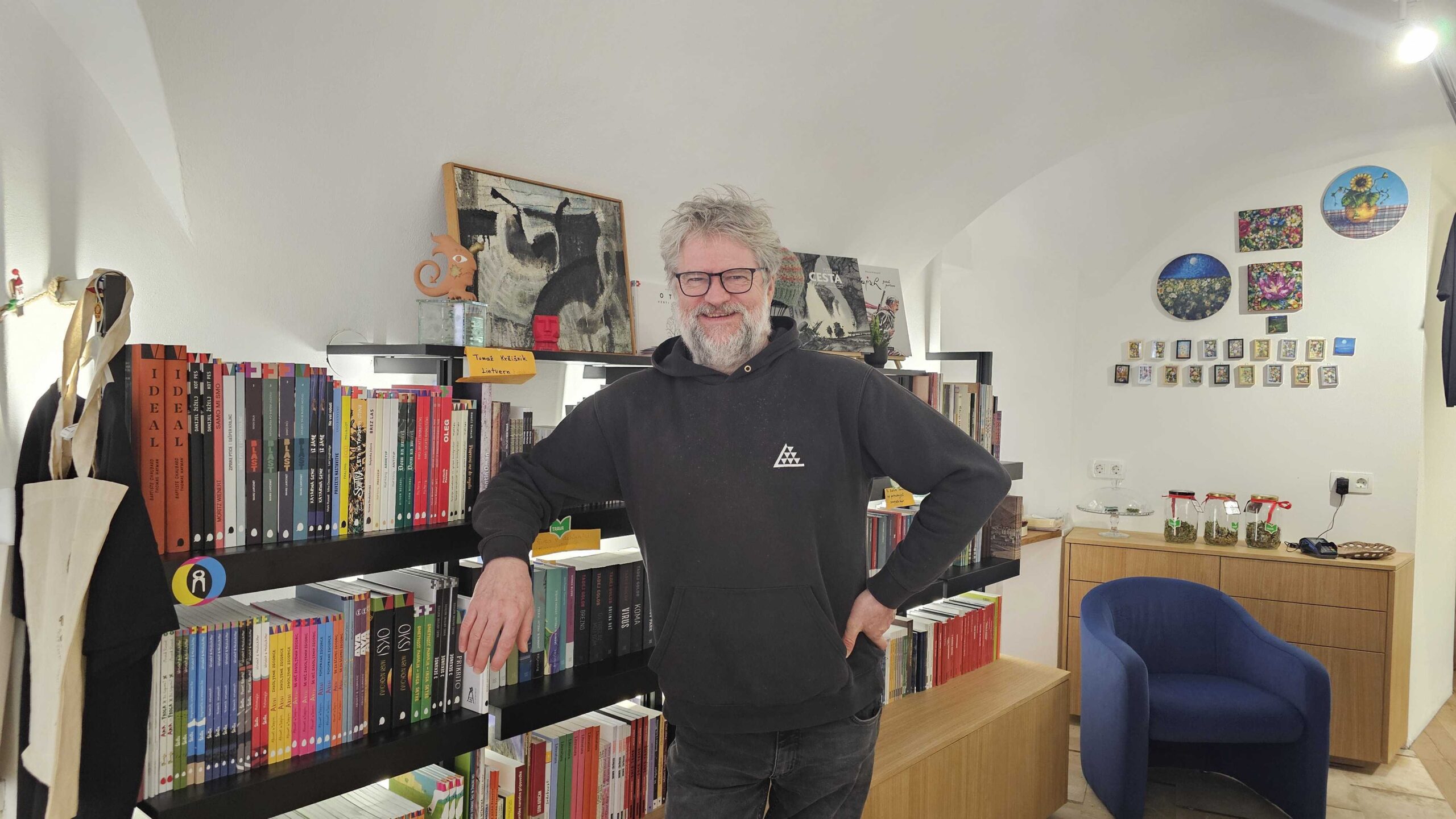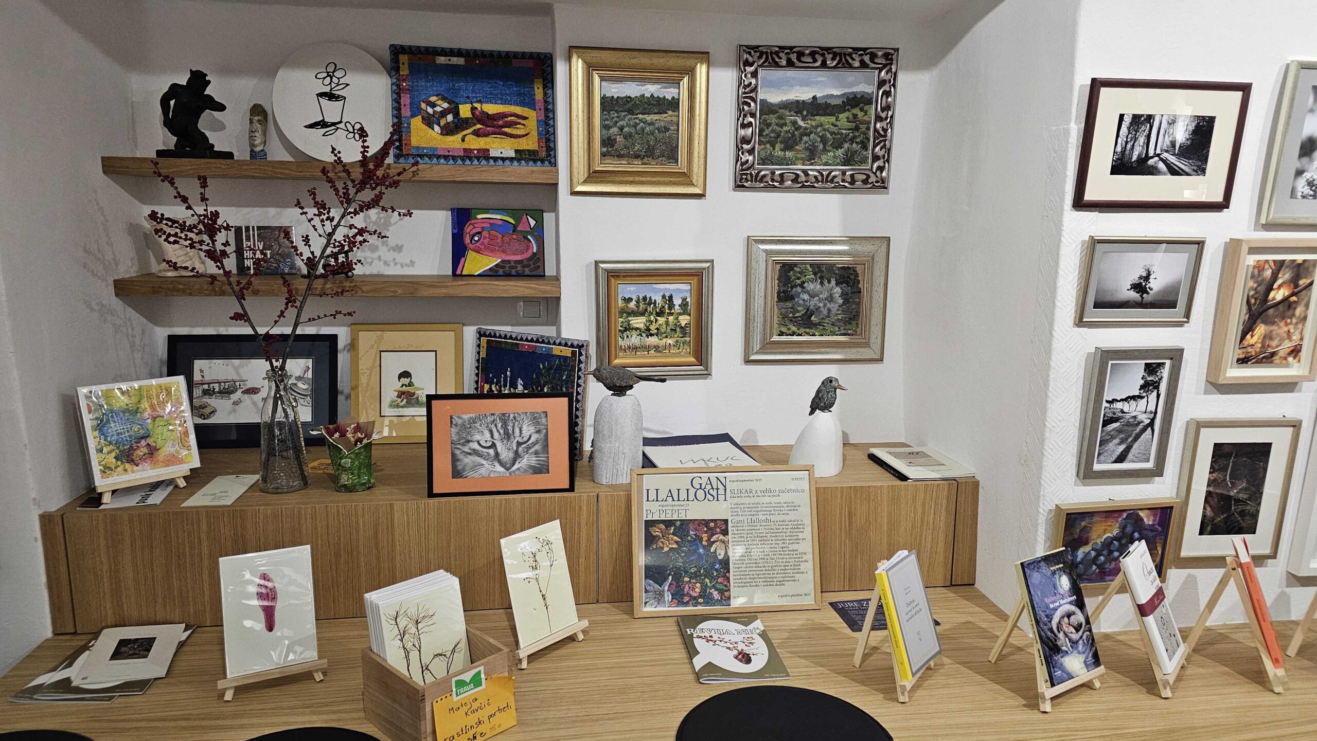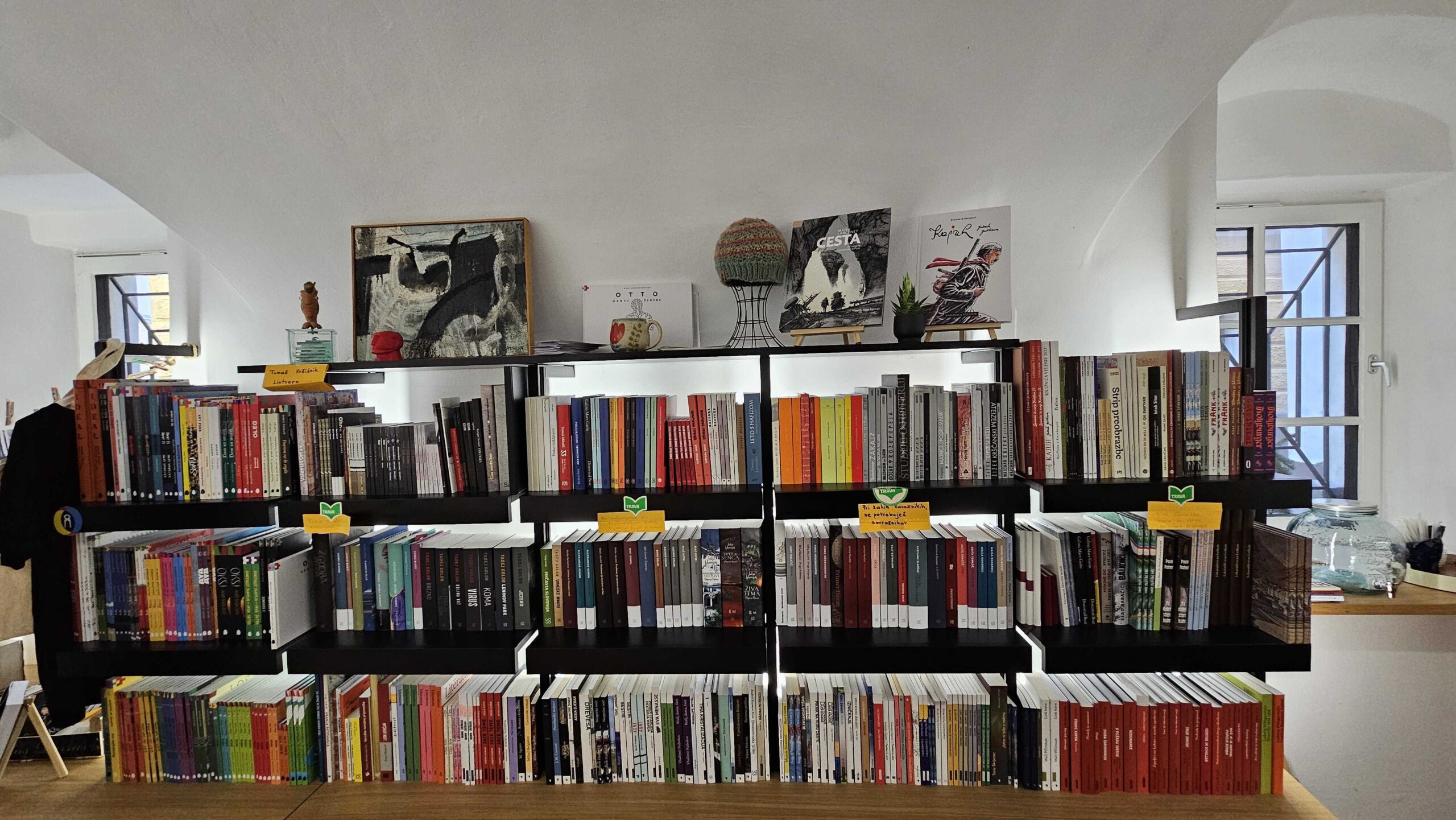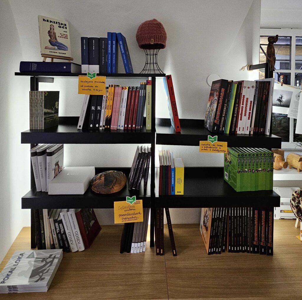 Knjigarna in galerija Trava na Mestnem trgu v Škofji Loki je prostor sodobnih umetniških praks, kjer se literatura, likovna umetnost, dizajn in umetna obrt prepletajo v odprtem dialogu.